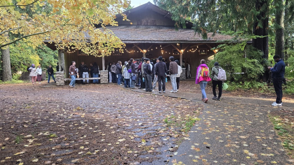 A tradition at Fall Conference is the international snack night hosted by all of the international students on the different campuses in the Pacific Northwest. Intervarsity is on a lot of different campuses across this region. We had students from Seattle, Tacoma, Oregon and Idaho. I even saw a treat from Honduras (it was of course plantain chips, so good!) Everyone gets so excited to try snacks from all over the world. Every different snack would have a place card of the country it was from. At the end the students would write everyone’s name in either Chinese, Japanese or Korean. It was pretty interesting. I was also told that my name (which usually doesn’t translate to many languages well), was pretty popular in Japan. So that is cool! I talked with our Pacific Islander students and they were saying they were trying to get people in their bible study to do a service project together. I was very proud of them, all of the students I have met have really big hearts for the world around them and it is very encouraging to me personally.